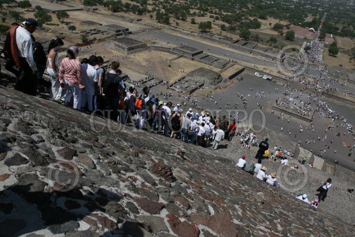 MÉXICO, D.F., 08MARZO2013.- Ante la gran afluencia de personas a las zonas arqueológicas del país con motivo del equinoccio de primavera, el Instituto Nacional de Antropología e Historia (INAH) aplicará en los 53 sitios prehispánicos que registran el mayor número de visitantes, un operativo que permita su seguridad y la conservación y disfrute este patrimonio cultural. Dicho plan de protección civil —coordinado entre los gobiernos federal, estatales y municipales, con el apoyo de personal del INAH, cuerpos policiales y de bomberos, Cruz Roja, Cruz Verde y organizaciones civiles— se realizará en la mayoría de tales sitios los días 20, 21 y 22 de marzo, aunque en algunas zonas como Teotihuacan (Estado de México) y Cuicuilco (Distrito Federal) se implementará también los días 17 y 18 de marzo, con motivo del fin de semana largo. De acuerdo con el Instituto de Astronomía de la Universidad Nacional Autónoma de México, este año el equinoccio de primavera dará comienzo el miércoles 20 de marzo a las 11:00 horas, por lo que se prevé que desde ese día se genere un importante flujo de visitantes a las zonas arqueológicas. En la imagen la zona arqueológica de Teotihucan. FOTO: INAH/ MAURICIO MARAT /CUARTOSCURO.COM