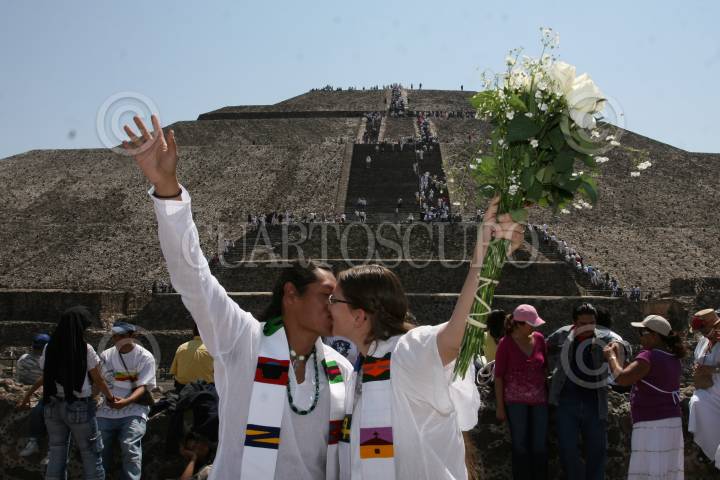 SAN JUAN TEOTIHUCAN EDO. DE MEX.-Cientos de personas se dieron cita para la celebración del Equinoccio de primavera en la zona Arqueologíca de Teotihucan. FOTO: GUILLERMO PEREA/CUARTOSCURO.COM