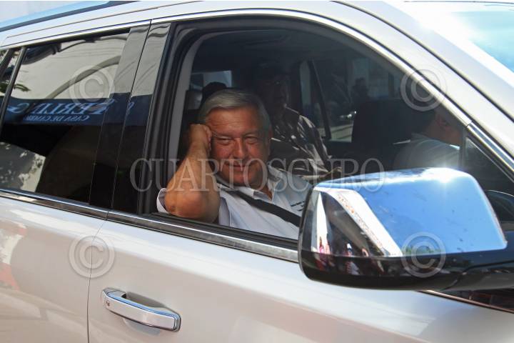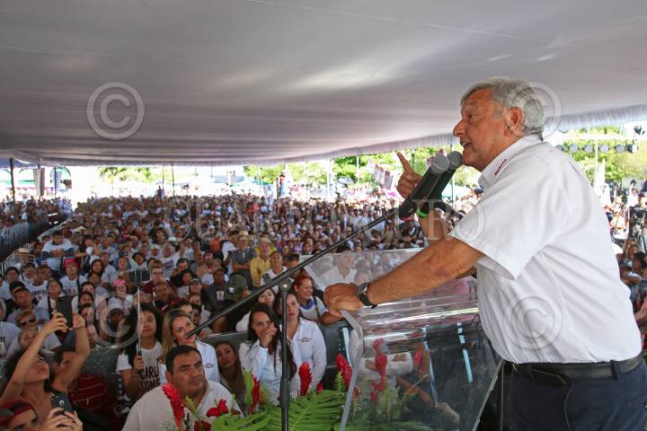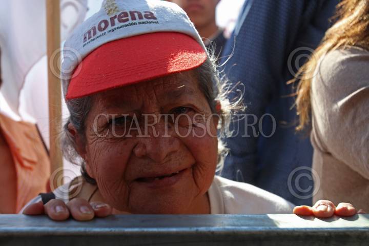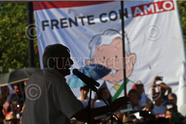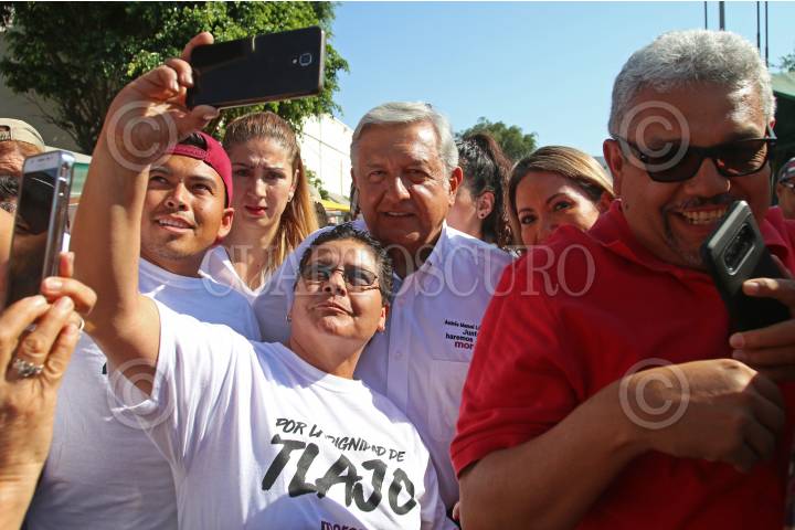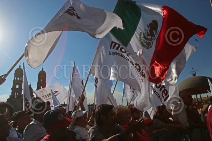 ZAPOPAN, JALISCO, 08ABRIL2018.- Andrés Manuel López Obrador candidato a la presidencia de México por MORENA, estuvo de visita por el estado como parte de su campaña, iniciando sus actividades en el municipio de Lagos de Moreno, después se traslado a Tepatitlán y cerrando en la Plaza de la Américas con un mitin al que se sumaron cientos de personas. FOTO: FERNANDO CARRANZA GARCIA / CUARTOSCURO.COM
