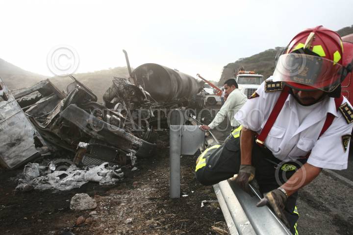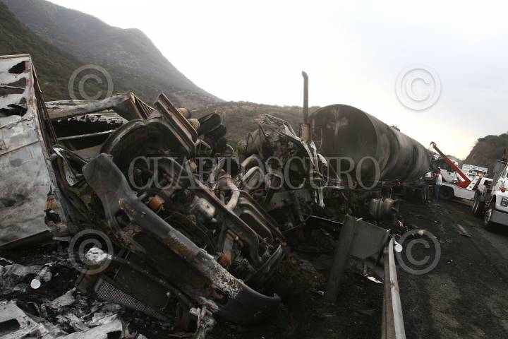 TEPEJI DEL RIO, HIDALGO.,13ABRIL2009.- Siete muertos, más de una veintena de heridos y al rededor de 15 vehículos accidentados, fue el saldo de un fuerte accidente donde explotó una pipa de leche, a la altura del kilómetro 80 de la autopista México Queretaro. Elementos de emergencia del municipio de Tepeji del Río, Distrito Federal, Estado de México y Policía Federal, participaron en el rescate de los cuerpos. FOTO: SAÚL LÓPEZ/CUARTOSCURO.COM