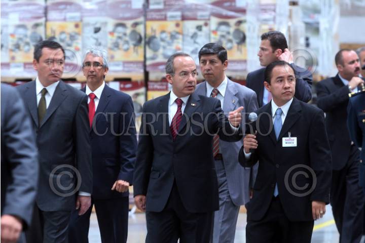 TEPEJI DEL RIÓ DE OCAMPO, HIDALGO, 25AGOSTO2009.- Felipe Calderón Hinojosa, presidente de la república, durante el recorrido en la inauguración del centro de distribución y laboratorio de óptica de Costco México. FOTO: ALFREDO GUERRERO/CUARTOSCURO.COM