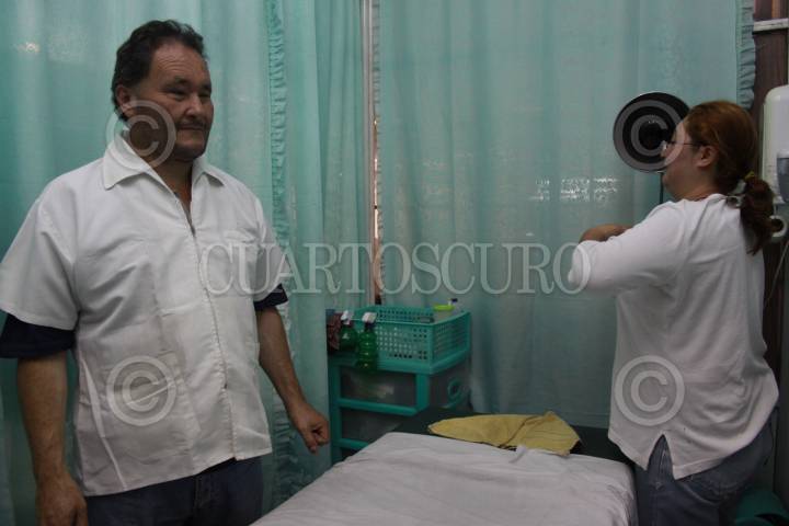 MÉXICO D.F., 07ABRIL2009.- Mariano Ayala García un hombre invidente de nacimiento, y padre de familia se dedica a dar masajes en la estación del metro Cuauhtémoc , profesión que le llevo 3 años de estudio en ciencias quirofisicas y mesoterapia estudios que realizó después de haber abandonado el oficio de vendedor de discos en el metro venta que en ocasiones combinaba con el canto. Los masajes oscilan entre los 90 y 150 pesos, Don Mariano ofrece masajes de relajación, reductivo y de rehabilitación entre otros, el programa ventas a ciegas cuenta con otros 4 centros de masajes ubicados en las siguientes estaciones : 18 de Marzo, Goméz Farias, Coyoacan y Cuahutémoc. FOTO: SÁSHENKA GUTIÉRREZ/CUARTOSCURO.COM