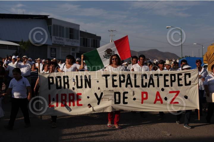 TEPALCATEPEC, MICHOACÁN. 24FEBRERO2016.- 500 personas marcharon por las principales vialidades de la cabecera municipal, entre ex miembros de la autodefensa, estudiantes y población civil, compusieron la caminata celebre que conmemora el tercer aniversario de el levantamiento en armas en contra del cártel de los Caballeros Templarios. Entre los asistentes se encontraba el Comandante Tilín, uno de los primeros alzados junto con quién se piensa es el creador de las autodefensas, Juan José Farías, alias El Abuelo. FOTO: ALAN ORTEGA /CUARTOSCURO.COM