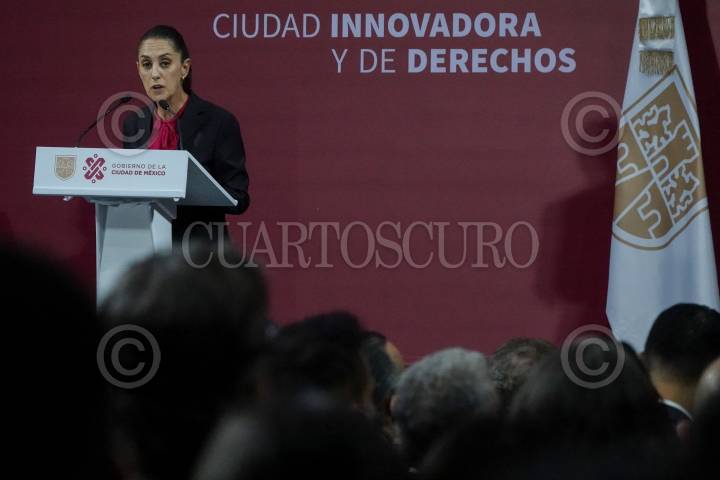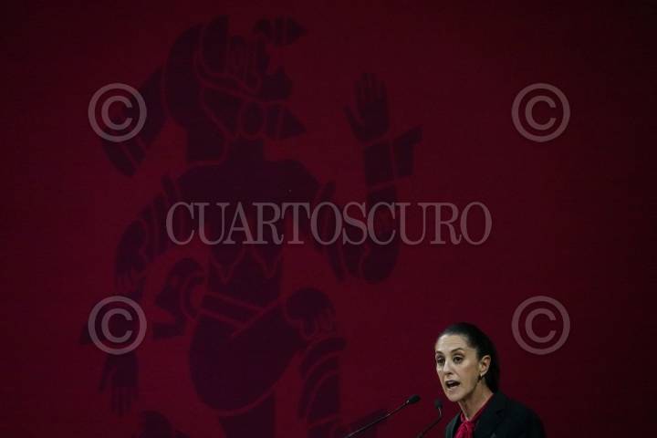 Claudia Sheinbaum durante su tercer informe de gobierno en el Antiguo Palacio de Minería.