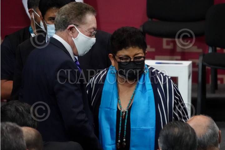Héctor Díaz Polanco, presidente de la Mesa Directiva de la CDMX, y Ernestina Godoy, fiscal general de la Ciudad de México, previo al tercer informe de gobierno de la jefa de gobierno Claudia Sheinbaum