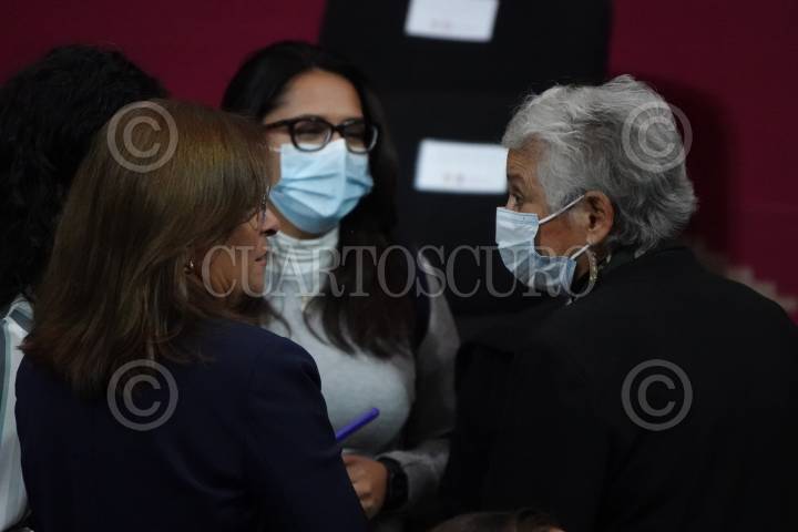 Rocío Nahle, secretaria de Energía, y Olga Sánchez Cordero, presidenta del Senado, previo al tercer informe de gobierno de la jefa de gobierno Claudia Sheinbaum