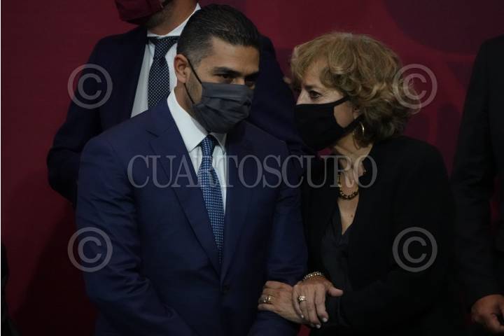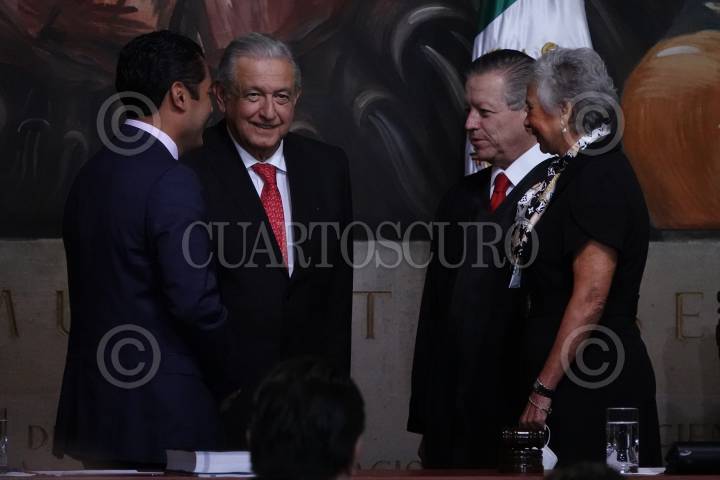 Sergio Gutiérrez; Andrés Manuel López Obrador; Arturo Zaldívar Lelo de Larrea, y Olga Sánchez durante el tercer informe de Arturo Zaldivar Lelo de Larrea