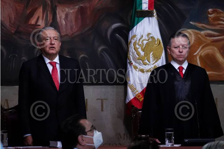Andrés Manuel López Obrador y Arturo Zaldívar Lelo de Larrea durante el tercer informe del ministro presidente