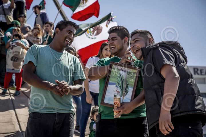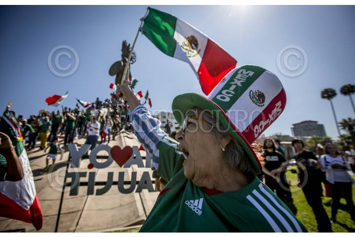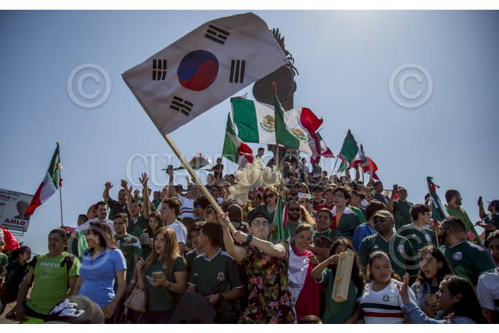 TIJUANA, BAJA CALIFORNIA, 27JUNIO2018.- Decenas de tijuanenses festejaron el pase a octavos de final en el mundial de Rusia 2018, a pesar de la derrota de la Selección Mexicana ante Suecia con marcador de 3-0. Algunos aficionados ondearon banderas coreanas en la glorieta Cuauhtémoc después de que el equipo asiático derrotara a la selección alemana, permitiendo que el equipo tricolor avance en segundo lugar de grupo. FOTO: OMAR MARTÍNEZ /CUARTOSCURO.COM