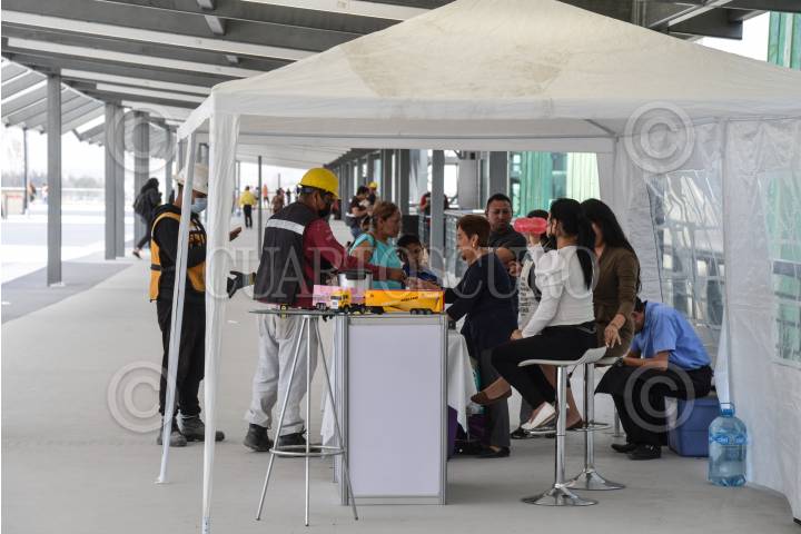 Un grupo personas se instalaron entre los accesos 5 y 6 de la terminal del Aeropuerto Internacional Felipe Ángeles (AIFA) para vender productos principalmente: aguas refrescos, galletas y café. Dichas personas aseguraron pertenecer a locales comerciales internos de la terminal aeropuertaria.