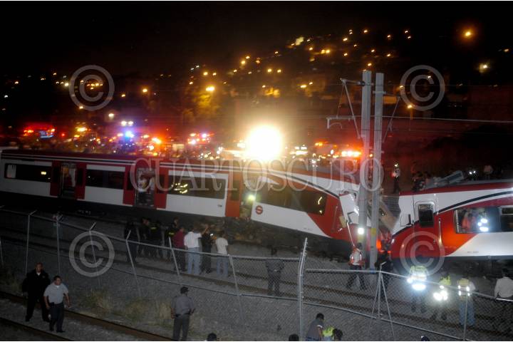 MÉXICO, D.F., 19ABRIL2009.-Más de 35 personas resultaron lesionadas en el choque de dos trenes de servicio Suburbano, el cual se registró entre las terminales San Rafael y Lechería. FOTO: LUIS CARBAYO/CUARTOSCURO.COM