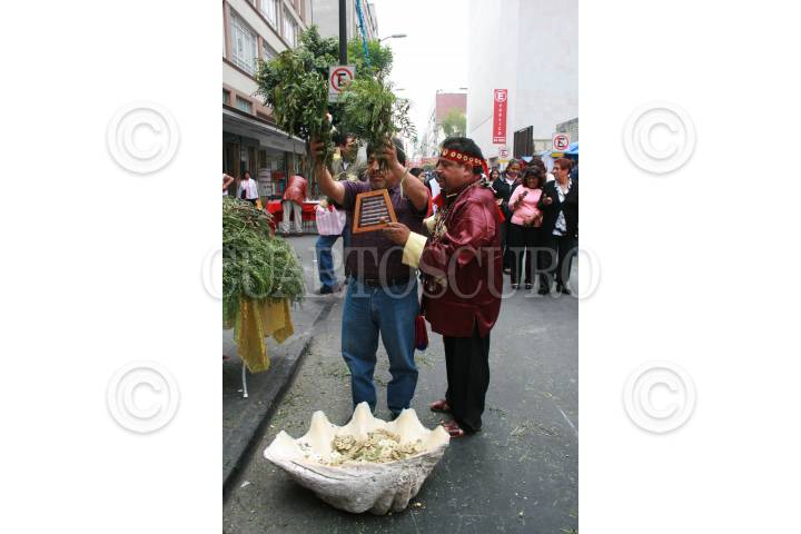 MÉXICO D.F., 30ENERO2009.- Un brujo realiza una limpia a un señor esto para celebrar la llegada del trabajo y la prosperidad encarnados en el año del buey las celebraciones se realizaran desde esta tarde en el barrio chino y terminaran el primero de Febrero. FOTO:SÁSHENKA GUTIÉRREZ/CUARTOSCURO.COM