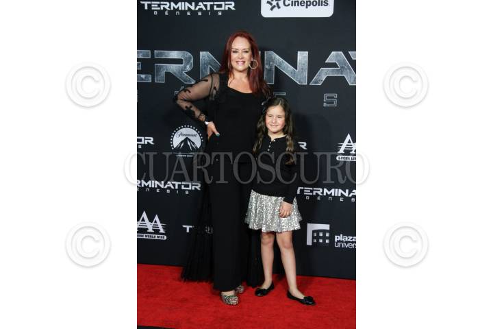 MÉXICO, D.F., 01JULIO2015.- Lina Santos y su hija Niure, durante la alfombra roja de Terminator Génesis. El luchador mexicano fue nombrado embajador latinoamericano de esta pelicula protagonizada por Arnold Schwarzenegger. FOTO: ISABEL MATEOS /CUARTOSCURO.COM