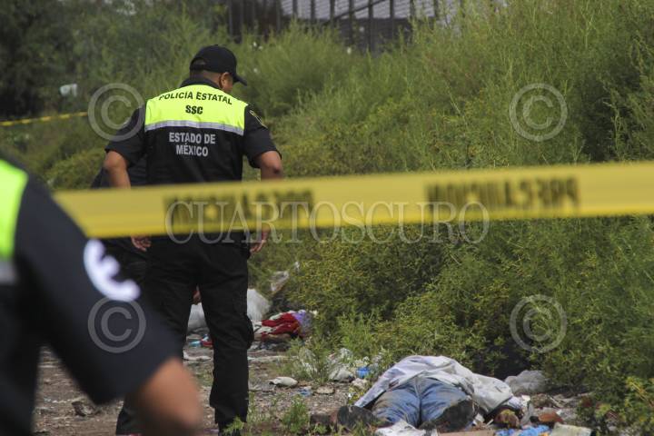 ECATEPEC, ESTADO DE MÉXICO, 19OCTUBRE2014.- Un hombre fue encontrado muerto en un camino de terraceria donde vecinos de la colonia Nueva Aragon descubrieron el cuerpo dando aviso a las autoridades, el cual se encontraba a un costado del Circuito Exterior Mexiquense y una Escuela Secundaria. FOTO: IVY CASTILLO /CUARTOSCURO.COM