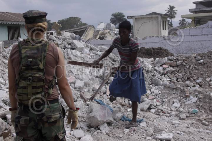 JACMEL, HAITÍ, 25ENERO2010.- Soldados estadounidenses observan como hatianos buscan cualquier cosa que les pueda servir para vivir luego de que un terremoto de 7.2 grados en la escala de richter devastara al país. FOTO: IVÁN STEPHENS/CUARTOSCURO.COM