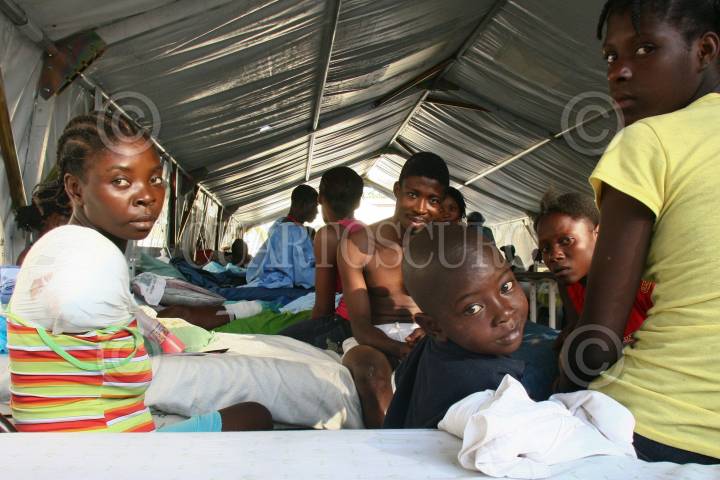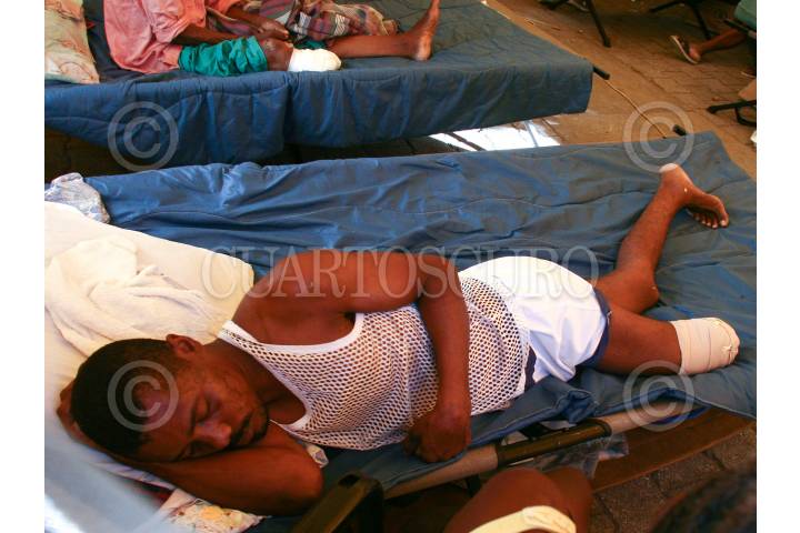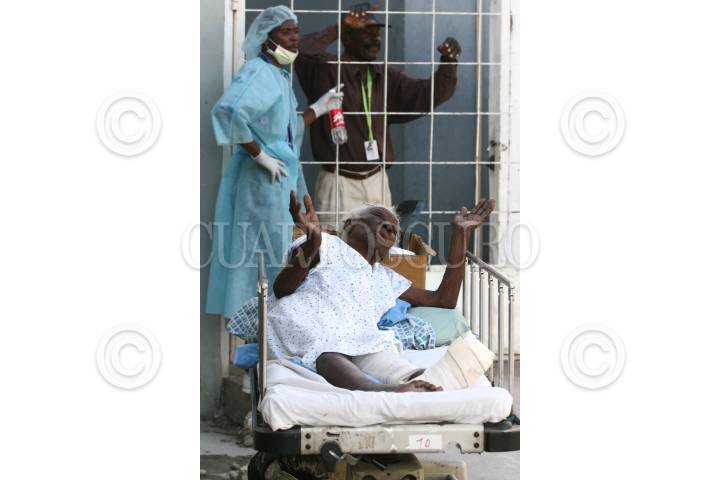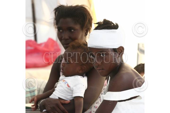 PUERTO PRINCIPE, HAITI., 30ENERO2010.- Centenares de haitianos, se encuentran en hospitales improvisados esperando que llegue mas ayuda medica internacional para recuperarse de las graves heridas que ocasiono la caída de muros y construcciones sobre su cuerpo después del terremoto que sacudió esta nación. FOTO: SAÚL LÓPEZ/CUARTOSCURO.COM