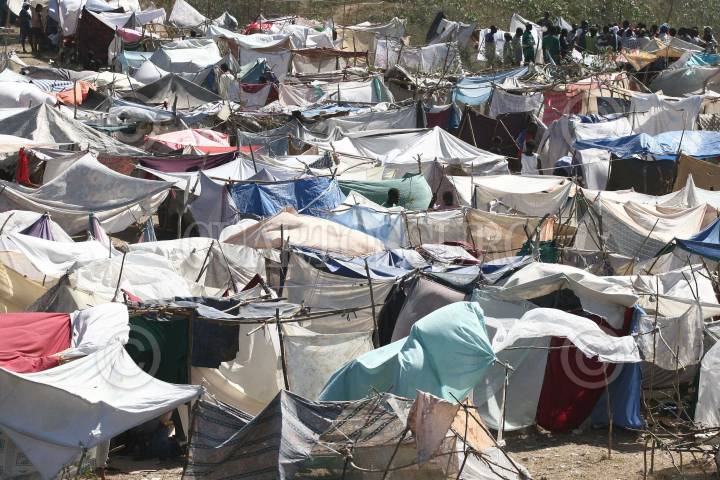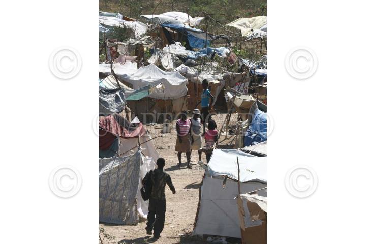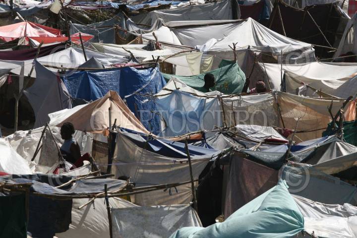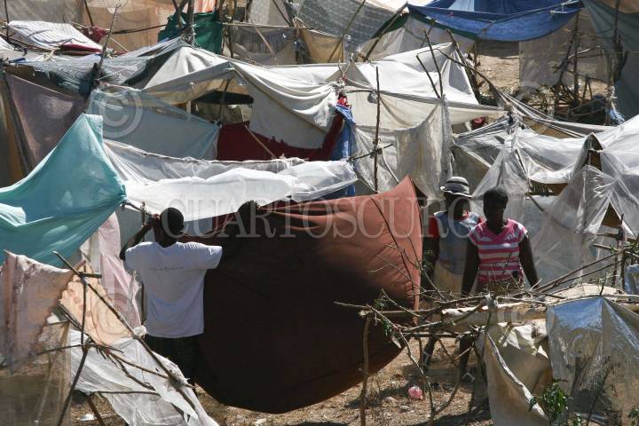 TABAR, HAITI., 31ENERO2010.- Personas de Puerto Principe y zona conurbada, han optado en salir de la ciudad e improvisar campamentos de palos y plastico como hogar debido al temor de que en la capital se sigan derrumbando mas edificios. FOTO: SAUL LOPEZ/CUARTOSCURO.COM