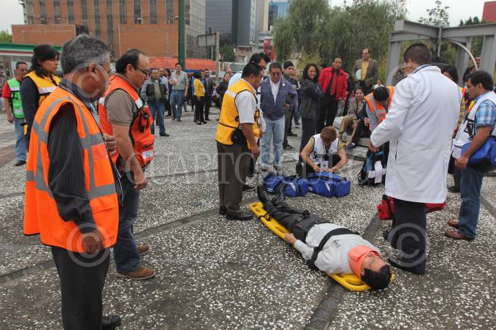 MÉXICO, D.F., 19SEPTIEMBRE2013.- Centenares de trabajadores en edificios en la zona del Paseo de la Reforma realizaron un macro-simulacro en conmemoración del sismo del 19 de Septiembre de 1985. FOTO: SAÚL LÓPEZ /CUARTOSCURO.COM