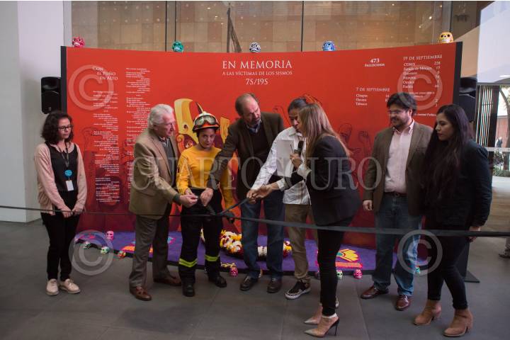 CIUDAD DE MÉXICO, 26OCTUBRE2017.- Se llevó a cabo la inauguración del altar en memoria a las víctimas de los sismos del 7 y 19 de septiembre ocurridos en Chiapas, Oaxaca y Ciudad de México, respectivamente. Además se llevó acabo un recital de poesía que realizó el escritor y periodista Juan Villoro quien recitó "Con el puño en alto" poema alusivo a los acontecimientos de los sismos. Villoro fue acompañado por la curadora e historiadora del arte, Linda Atach; el pintor y escultor Edgar Flores mejor conocido como "Saner" y Luz Álvarez, miembro del grupo de rescatistas Topos. El evento fue organizado en el museo Memoria y Tolerancia. FOTO: TERCERO DÍAZ /CUARTOSCURO.COM
