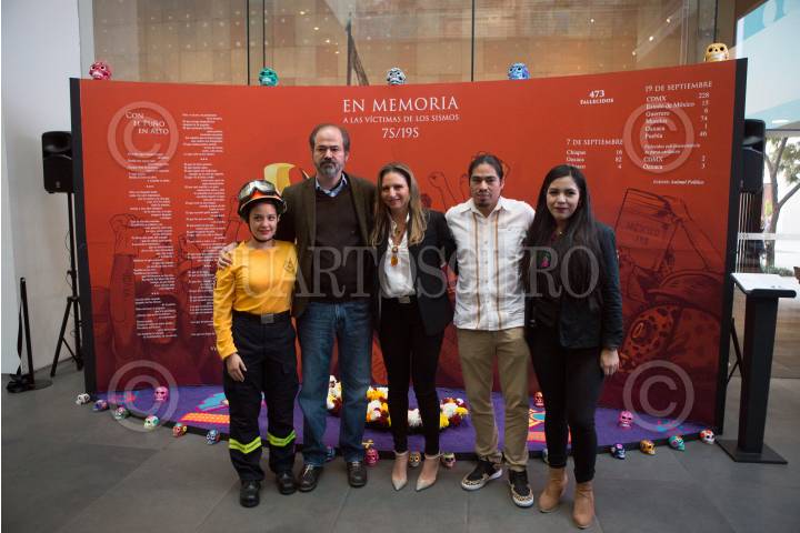 CIUDAD DE MÉXICO, 26OCTUBRE2017.- Se llevó a cabo la inauguración del altar en memoria a las víctimas de los sismos del 7 y 19 de septiembre ocurridos en Chiapas, Oaxaca y Ciudad de México, respectivamente. Además se llevó acabo un recital de poesía que realizó el escritor y periodista Juan Villoro, acompañado por la curadora e historiadora del arte, Linda Atach; el pintor y escultor Edgar Flores mejor conocido como "Saner" y Luz Álvarez, miembro del grupo de rescatistas Topos. El evento fue organizado en el museo Memoria y Tolerancia. FOTO: TERCERO DÍAZ /CUARTOSCURO.COM