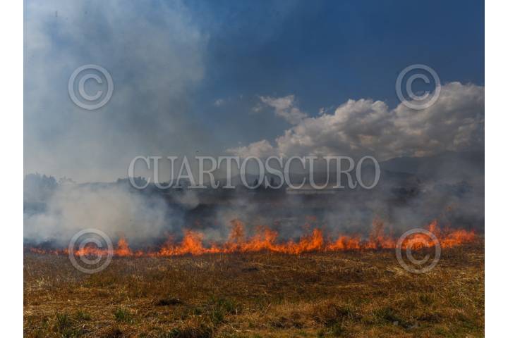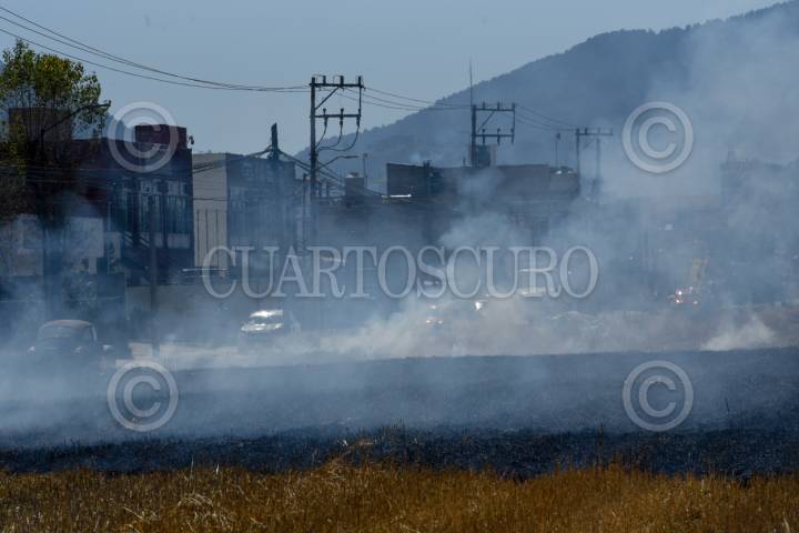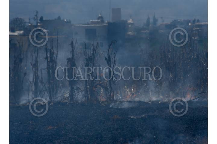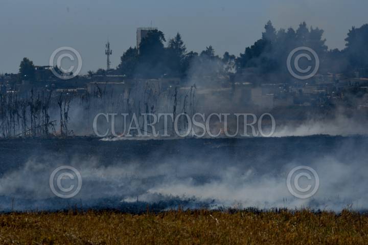 SAN ANTONIO LA ISLA, ESTADO DE MÉXICO, 16ENERO2024.- Durante estas fechas es común observar la quema en predios dedicados al cultivo, esto es utilizado como una forma de preparar el suelo para una nueva cosecha, aunque esto represente un daño para el suelo y contaminación. FOTO: CRISANTA ESPINOSA AGUILAR /CUARTOSCURO.COM