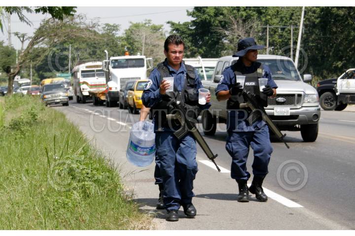 VILLAHERMOSA, TABASCO. 22FEBRERO2008.- Terrible calor se registra en tierras tabasqueñas, y tal es el caso que en este mediodía las temperaturas registraban 39 grados centigrados provocando en los cuerpos policíacos extragos y ansiedad de agua cuando realizan el operativo Tabasco Seguro. FOTO. MARCO POLO GUZMÁN HERNÁNDEZ/CUARTOSCURO.COM