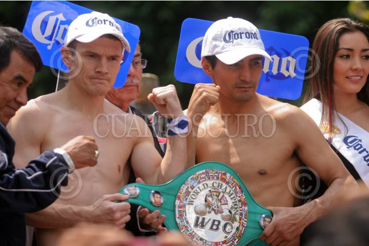 MÉXICO, D.F., 10SEPTIEMBRE2010.- Willie "Manos de Acero" y Erick "El Terrible" Morales, durante el pesaje, previo a la encuentro boxistico "Campeones Bicentenario" que se realizará el próximo 11 de Septiembre en la plaza de toros México. FOTO: SAÚL LÓPEZ/CUARTOSCURO.COM