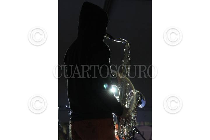 MÉXICO, D.F., 30OCTUBRE2012.- Un grupo de jazz amenizo el foro “Tertulias, A Donde Va la Izquierda” realizado en la explanada de la delegación Coyoacán. FOTO: SAÚL LÓPEZ /CUARTOSCURO.COM