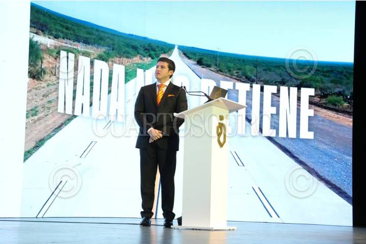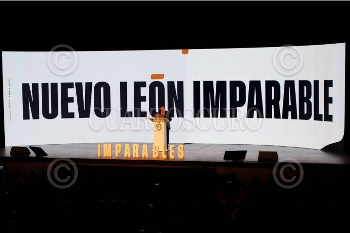 MONTERREY, NUEVO LEÓN, 28OCTUBRE2023.- El gobernador Samuel García Sepúlveda, presentó su Segundo Informe ante autoridades estatales y federales en el Pabellón M. En su discurso destacó la llegada de Tesla a Nuevo León, así como la inversión en la presa "El Cuchillo II" que brindará agua para Monterrey y su área metropolitana al menos diez años. FOTO: CUARTOSCURO.COM