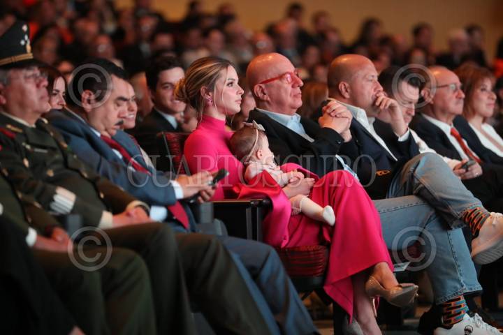 MONTERREY, NUEVO LEÓN, 28OCTUBRE2023.- Mariana Rodríguez, esposa del gobernador Samuel García Sepúlveda y su hija Mariel junto a autoridades estatales y federales durante el Segundo Informe en el Pabellón M. FOTO: CUARTOSCURO.COM