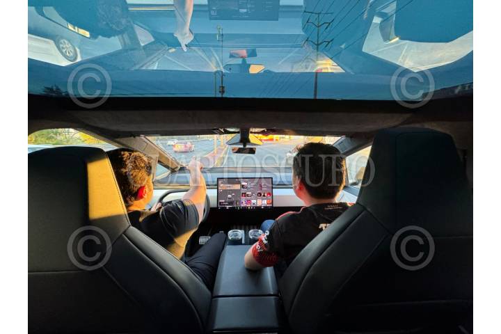 MONTERREY, NUEVO LEÓN, 29MARZO2024.- Samuel García, gobernador de Nuevo León, y Jorge Álvarez Máynez, candidato a la presidencia por Movimiento Ciudadano, viajaron en el automóvil "Cibertruck" de Tesla rumbo Festival "Pal Norte". FOTO: PRENSA ÁLVAREZ MÁYNEZ/CUARTOSCURO.COM