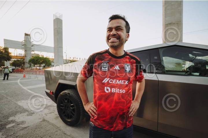 MONTERREY, NUEVO LEÓN, 29MARZO2024.- Jorge Álvarez Máynez, candidato a la presidencia por Movimiento Ciudadano, y Samuel García, gobernador de Nuevo León, viajaron en el automóvil "Cibertruck" de Tesla rumbo Festival "Pal Norte". FOTO: PRENSA ÁLVAREZ MÁYNEZ/CUARTOSCURO.COM