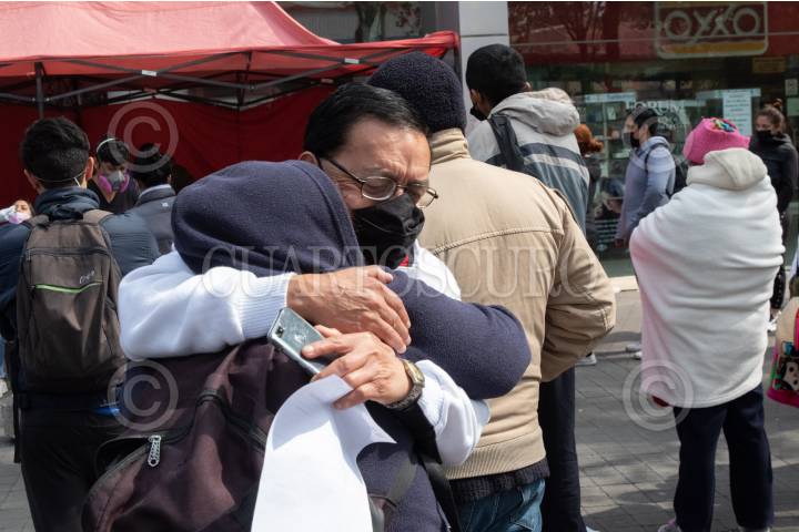 Continúa la demanda por las pruebas para detectar el Covid-19, en el módulo ubicado en Forum Buenavista, las personas se tuvieron que formar entre 6 u 8 horas para poder hacerse el test. En la imagen una pareja se abraza luego de enterarse que sus pruebas salieron negativas.
