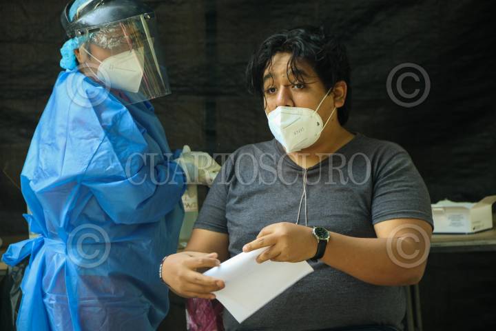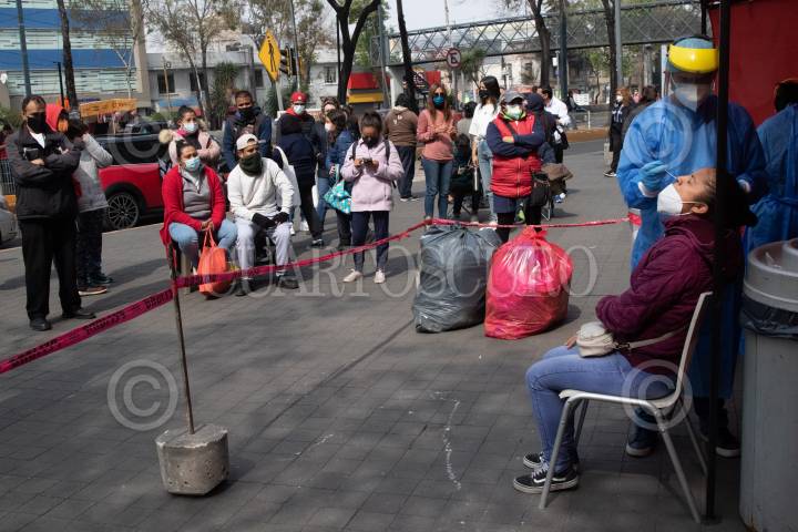 Esta semana la capital paso a semáforo amarillo de la alerta epidemiológica de Covid-19, en los kioscos instalados para hacerse la prueba capitalinos tienen que llegar desde las 4 o 5 de la mañana, tal es el caso del que se ubica en la explanada del metro Etiopía.