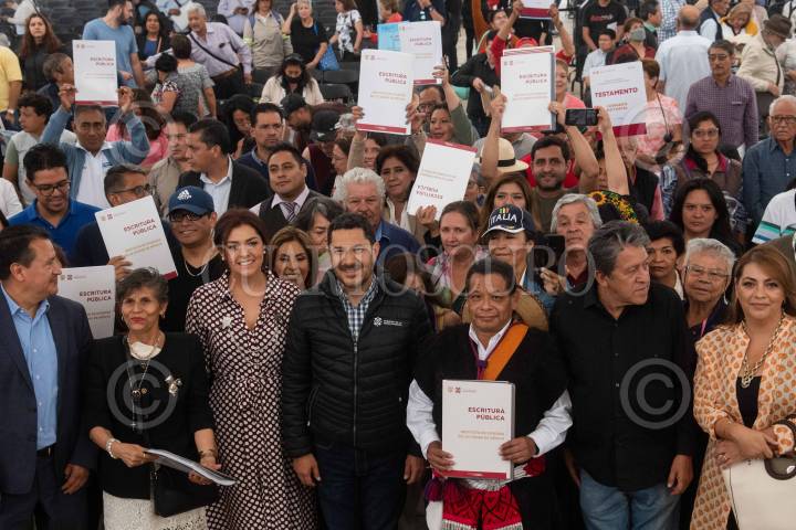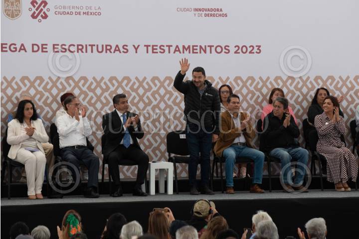 Martí Batres, jefe de Gobierno, encabezó la entrega Masiva de Escrituras y Testamentos 2023 en la explanada del Monumento a la Revolución.