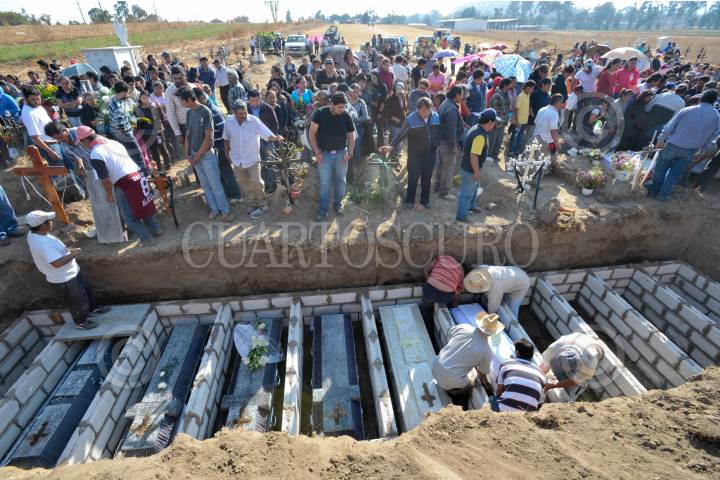 SAN MARTIN TEXMELUCAN, PUEBLA, 20DICIEMBRE2010.- Sepultan a las victimas de la explosión de la colonia el Arenal. La familia Medel Brito dio el último adiós en el panteón de San Martin Texmelucan conocido como la “Petroquimica” a 11 integrantes de la familia que fueron atrapados por las llamas cuando dormían en su domicilio. FOTO: LUIS CARBAYO/CUARTOSCURO.COM
