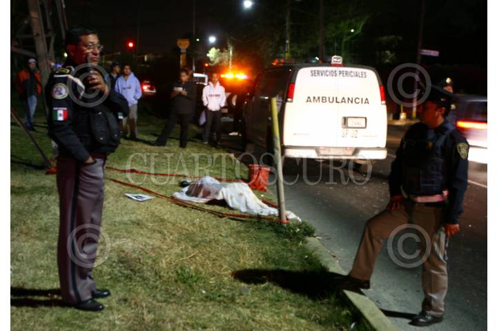 MÉXICO, D.F., 27AGOSTO2010.- Un hombre de aproximadamente 30 años murió al ir corriendo y ser arrollado por un automóvil en los carriles de alta velocidad de Aquiles Serdán y la avenida Tezozomoc en la delegación Azcapotzalco. FOTO: LUIS CARBAYO/CUARTOSCURO.COM