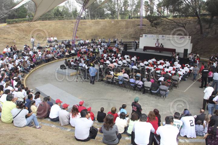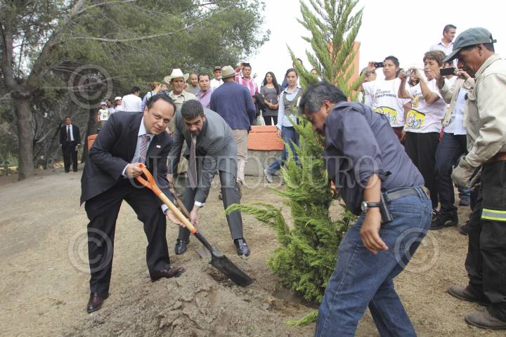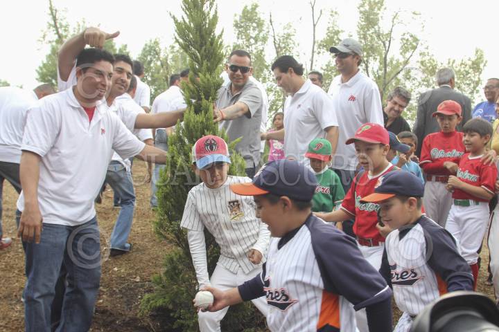 MÉXICO, D.F.,06MAYO2013 .- Sergio Palacios jefe delegacional de Azcapotzalco, Jorge Alum Kahwagi gerente general del equipo de beisibol Los Diablos Rojos, e integrantes del equipo, acudieron al parque Tezozomoc donde iniciaron la campaña de reforestación del parque. FOTO: SAÚL LÓPEZ /CUARTOSCURO.COM