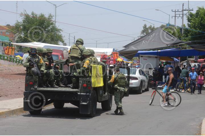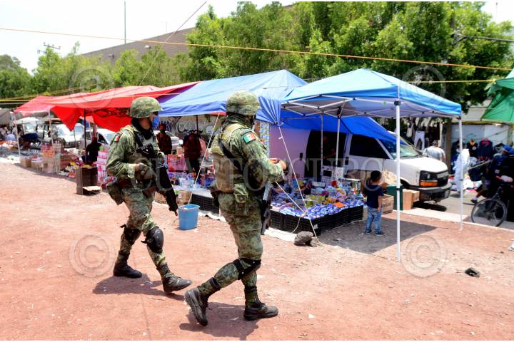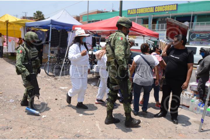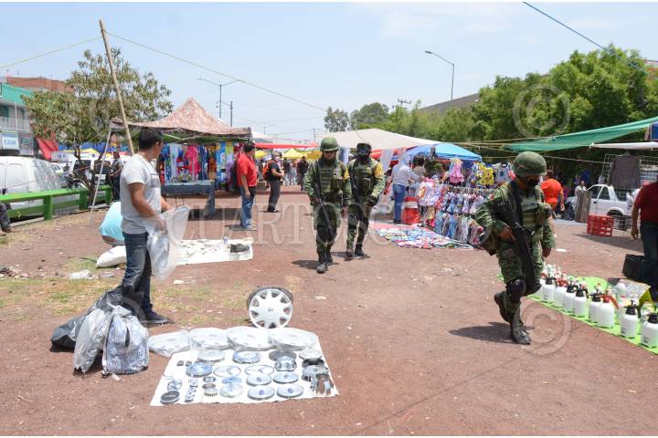 Militares invitarona los comerciantes del tianguis El Salado a retirarse esto para evitar aglomeraciones de personas y así contener los contagios de Covid-19 que se han disparado en las últimas semanas