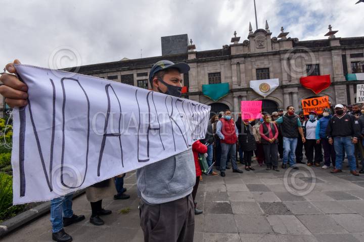 Comerciantes de Santiago Tianguistenco rechazan la reubicación del tradicional tianguis de los martes y pidieron intervención de los legisladores locales.