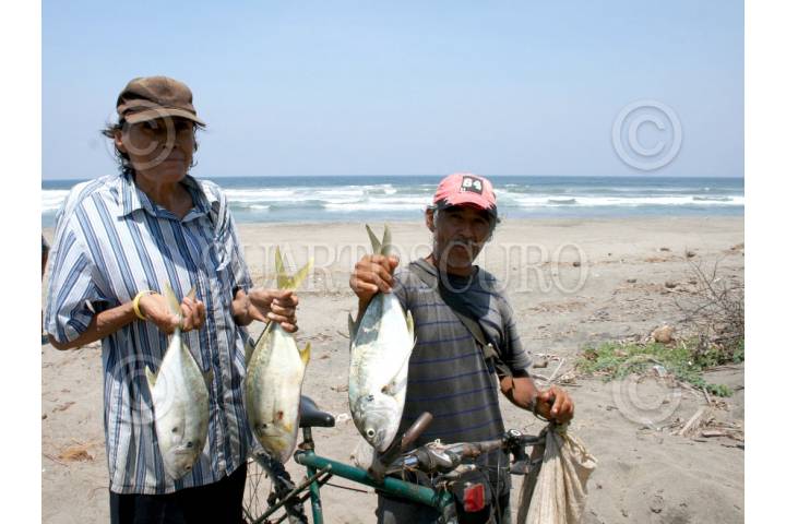 PANTLA, GUERRERO, 24MAYO2008.- Pescadores muestran la ganancia obtenida luego de pescar en la playa principal de la comunidad de Planta municipio de Zihuatanejo, donde el viernes pasado se registrara un nuevo ataque de tiburon en contra del joven Osvaldo Mata Valdovinos originario de dicha poblacion cuando este practicaba surf en compañia de dos amigos. FOTO: OSCAR ALVARADO/CUARTOSCURO.COM