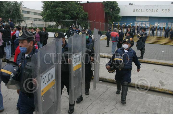 MÉXICO, D.F., 19MAYO2009.- Esta mañana, elementos del Grupo Táctico Tiburón de la Subsecretaría del Sistema Penitenciario, ingresaron al interior del reclusorio sur, debido a que se registro un amotinamiento entre los internos de los dormitorios 7 y 8. A las afueras del penal familiares exigían ingresar a ver a sus internos. FOTO: SAÚL LÓPEZ/CUARTOSCURO.COM