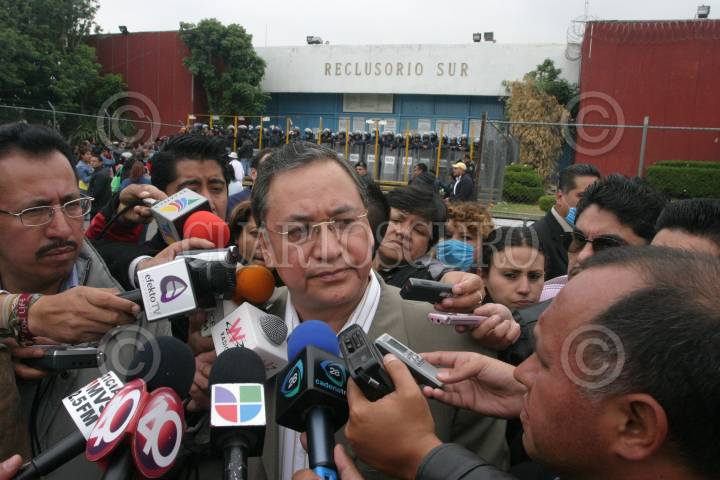 MÉXICO, D.F., 19MAYO2009.- Miguel Rivera Villa, Director Ejecutivo Jurídico y Derechos Humanos del sistema nacional penitenciario, es entrevistado por reporteros a las afueras del reclusorio sur después que se registrara un amotinamiento entre los internos de los dormitorios 7 y 8, de dicho penal. FOTO: SAÚL LÓPEZ/CUARTOSCURO.COM