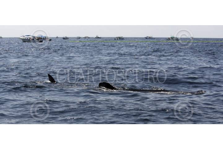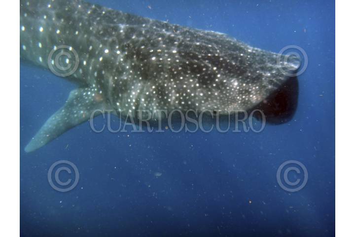 CANCÚN, QUINTANA ROO, 05AGOSTO2013.- El tiburón ballena es el pez más grande que existe en el planeta, puede llegar a medir hasta 18 metros de longitud. Esta especie prefiere el agua superficial cálida, o aquellas áreas donde hay brotes de agua más fría rica en nutrientes, ya que esas condiciones favorecen el crecimiento del plancton del cual se alimenta.Las manchas que presentan los tiburones ballena han generado diversos nombres locales como el de dominó o pez dama, aludiendo al juego de mesa. Cada individuo presenta un patrón único de manchas que permite su identificación individual, es como su huella digital ya que no se modifica con el crecimiento. Es posible que también tengan una función de atractivo social. FOTO: ELIZABETH RUÍZ / CUARTOSCURO.COM