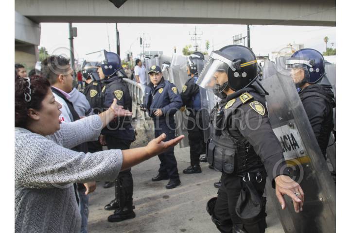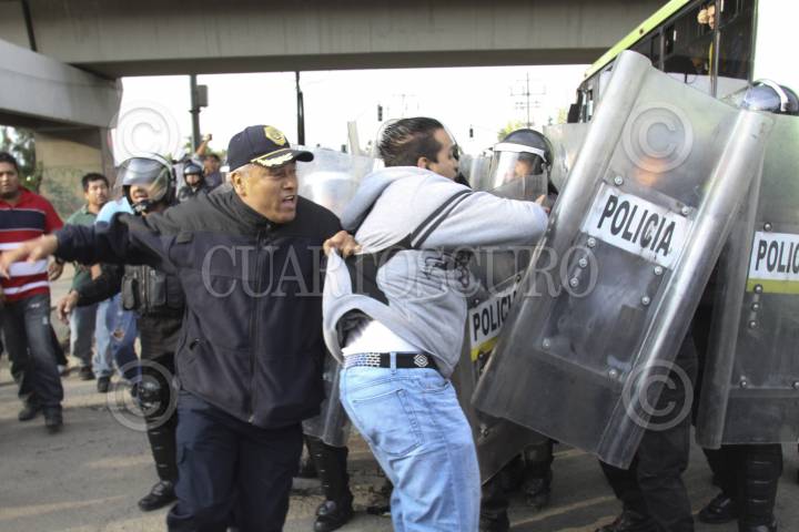 MÉXICO, D.F., 04JULIO2014.- Por varias horas, decenas de vecinos de Ticoman y de los alrededores de la colonia CTM Risco, bloquearon de manera intermitente las calles en protesta por el Hoy No Circula, lo que provoco un enfrentamiento con granaderos dejando un saldo preliminar de 7 detenidos y 2 lesionados FOTO: LUIS CARBAYO /CUARTOSCURO.COM