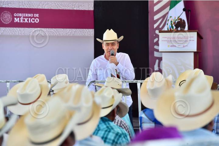 LA YESCA, NAYARIT, 08MAYO2015.- Adelfo Regino, director gnereal del Instituo Nacional de los Pueblos Indígenas; Ariadna Montiel Reyes, secretaria de Bienestar, y Miguel Ángel Navarro, gobernador de Nayarit, durante el desarrollo del Plan de Justicia para el pueblo Wixárika: Restitución de tierras a la comunidad de San Sebastián Teponahuaxtlán y su anexo Tuxpan. FOTO: PRESIDENCIA/CUARTOSCURO.COM