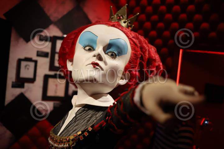 CIUDAD DE MÉXICO, 25JUNIO2025.- Una figura de La Reina Roja, de Alicia en el País de las Maravillas, se encuentra dentro de la exposición de Tim Burton "El Laberinto" donde se muestran los proceso creativos del director, así como sus los personajes más importantes que ha creado a lo largo de su carrera. FOTO: DANIEL AUGUSTO/ CUARTOSCURO.COM