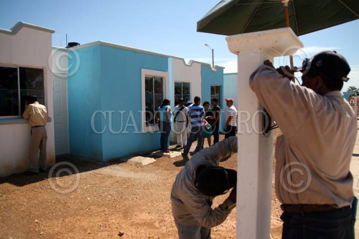 VILLAHERMOSA, TABASCO, 24JUNIO2009.- Empleados de la empresa encargada de la construcción de las casas en el fraccionamiento 27 de Octubre revisan y dan los últimos trabajos de adecuación para que las viviendas sean habitadas de inmediato. FOTO: MARCO POLO GUZMÁN HERNÁNDEZ/CUARTOSCURO.COM