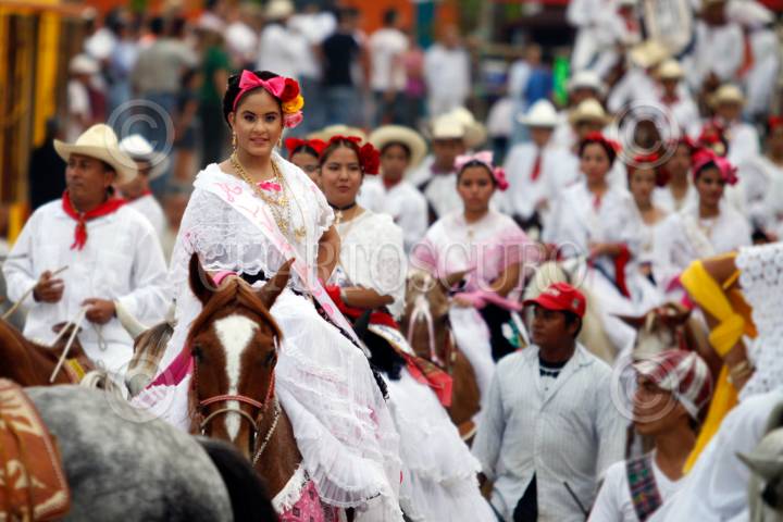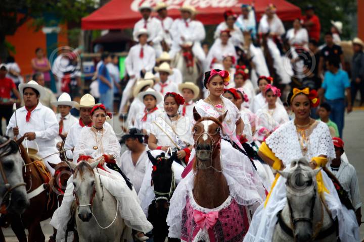 TLACOTALPAN, VERACRUZ, 31ENERO2011.- La ciudad patrimonio de la humanidad vive las fiestas de la Candelaria, este día se realizó la tradicional cabalgata por las principales calles del pueblo, donde hombres y mujeres ataviados con trajes jarochos desfilaron en sus caballos como cada año. FOTO: FÉLIX MÁRQUEZ/CUARTOSCURO.COM