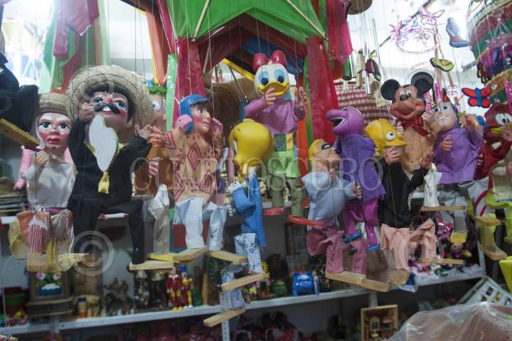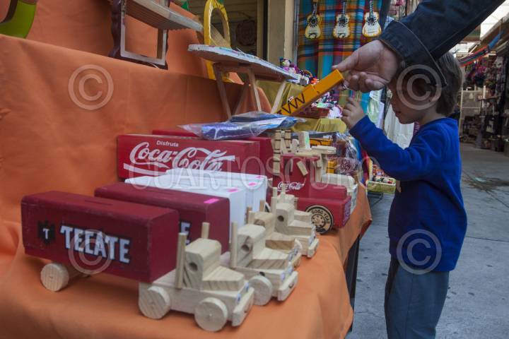 MÉXICO, D.F., 04ENERO2014.- Diversos juguetes típicos mexicanos tales como, trompos, baleros, camiones y aviones de madera, marionetas, casitas de muñeca, entre muchos otros, son vendidos en algunos mercados de la ciudad como en el mercado de artesanías de La Ciudadela, que se encuentra ubicado cerca del metro Balderas, en el centro de la ciudad. En años recientes los niños mexicanos ya no piden estos juguetes como regalo de Reyes Magos, ahora prefieren diversos productos electrónicos e incluso se ha disparado la venta de productos chinos que son juguetes de bajo precio pero de muy mala calidad. FOTO: RODOLFO ANGULO /CUARTOSCURO.COM